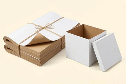 - Corrugated: Thicker and durable stock to create corrugated boxes for products shipping. It offers extra safety to heavy products. Available from A-flute to F-flute.