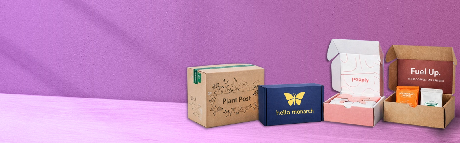 Branded mailer boxes are delivered flat (no wasted space), allowing you to save valuable warehouse or office space.